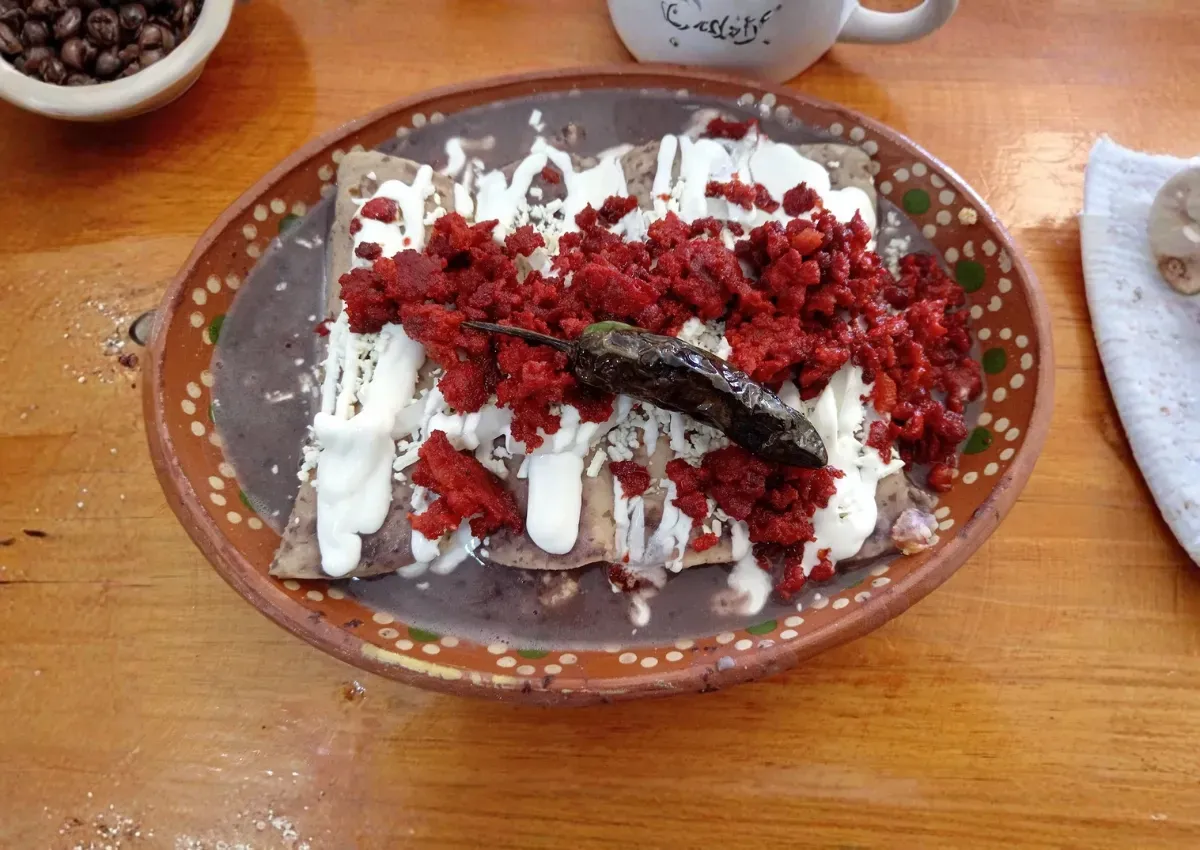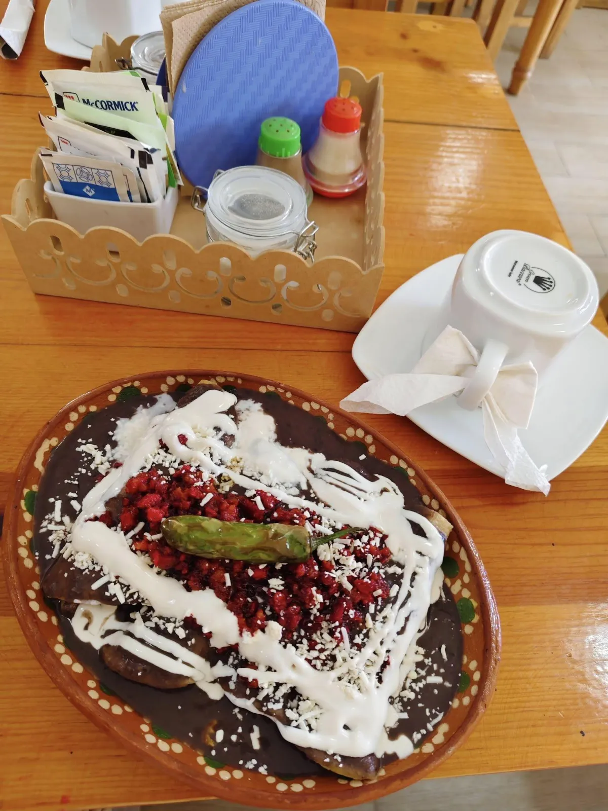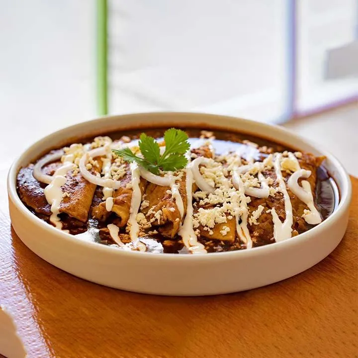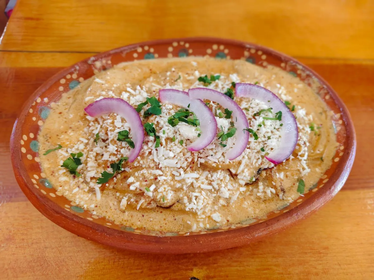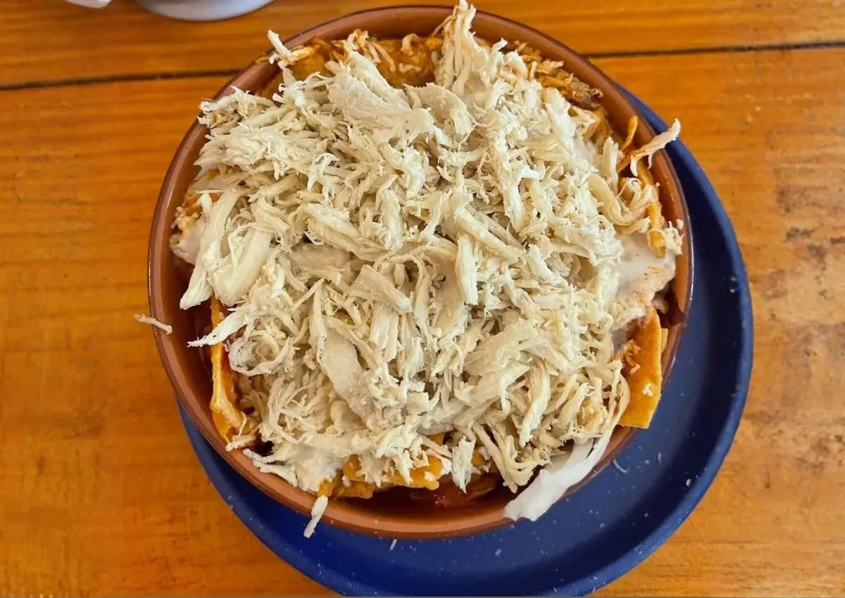 Soft chilaquiles lovingly cooked in a blend of red and guajillo salsa, seasoned with epazote. Just like Mom would make on a slow Sunday morning. Comforting, flavorful, and made to spoil you from the very first bite.