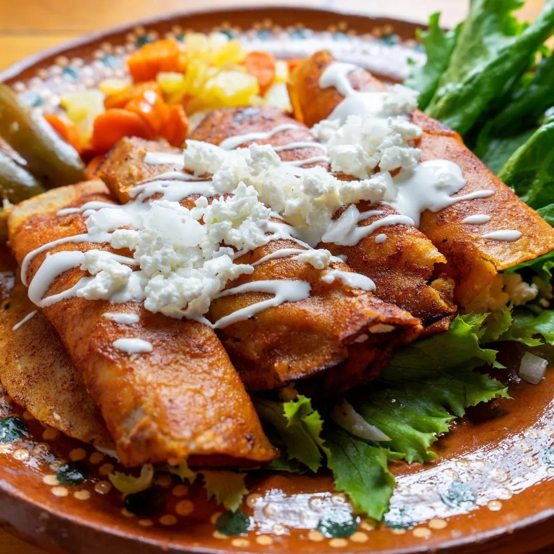 Enchiladas stuffed with Mexican-style eggs, covered in a smooth bean sauce, and topped with melted cheese, cream, crispy chorizo, and roasted serrano chili. A rich, savory dish full of hometown flavor — the kind of breakfast that feels bold, comforting, and made with Mom’s touch.